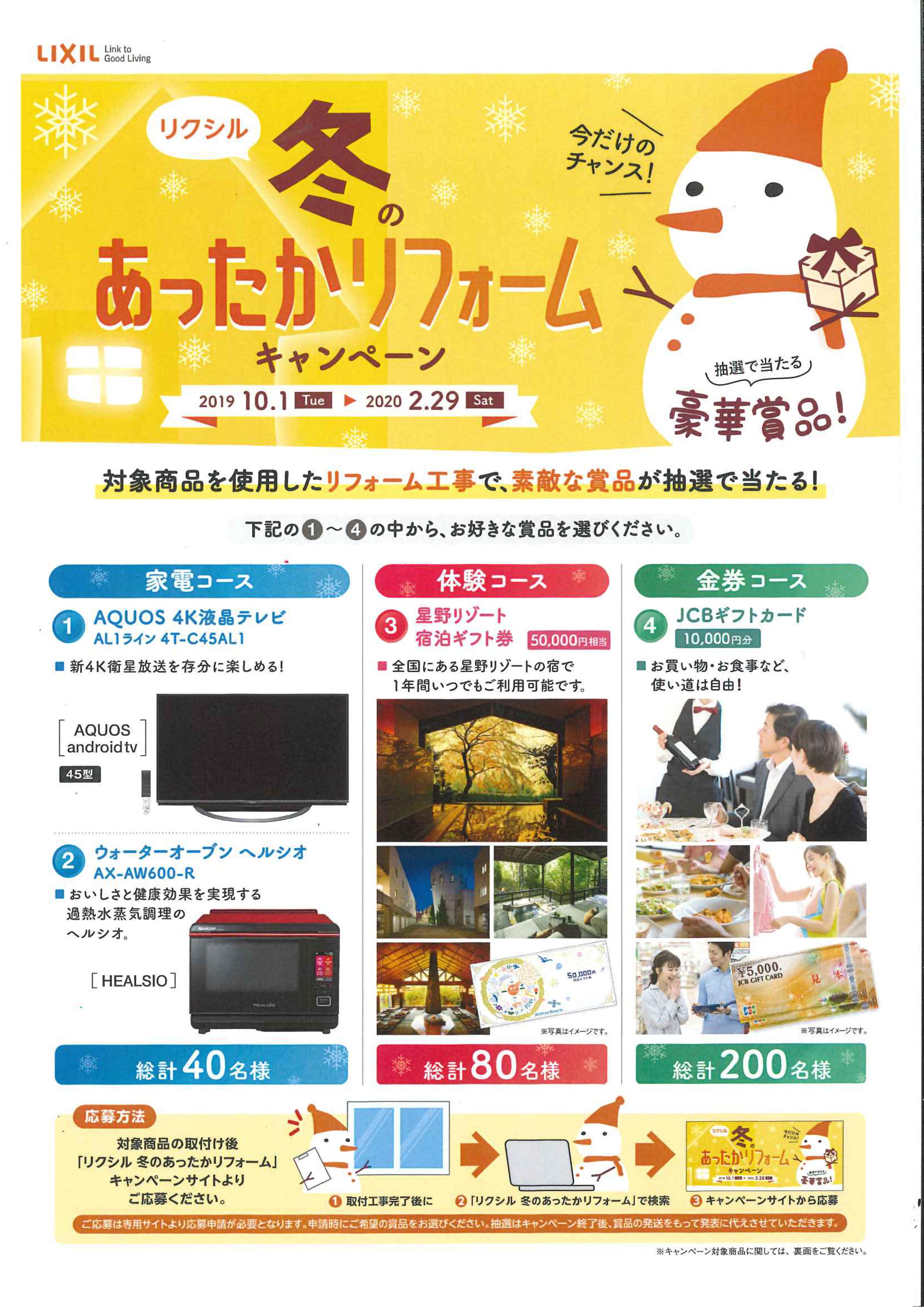 対象商品を使用したリフォーム工事で、豪華商品が抽選で当たるお得なキャンペーンです!